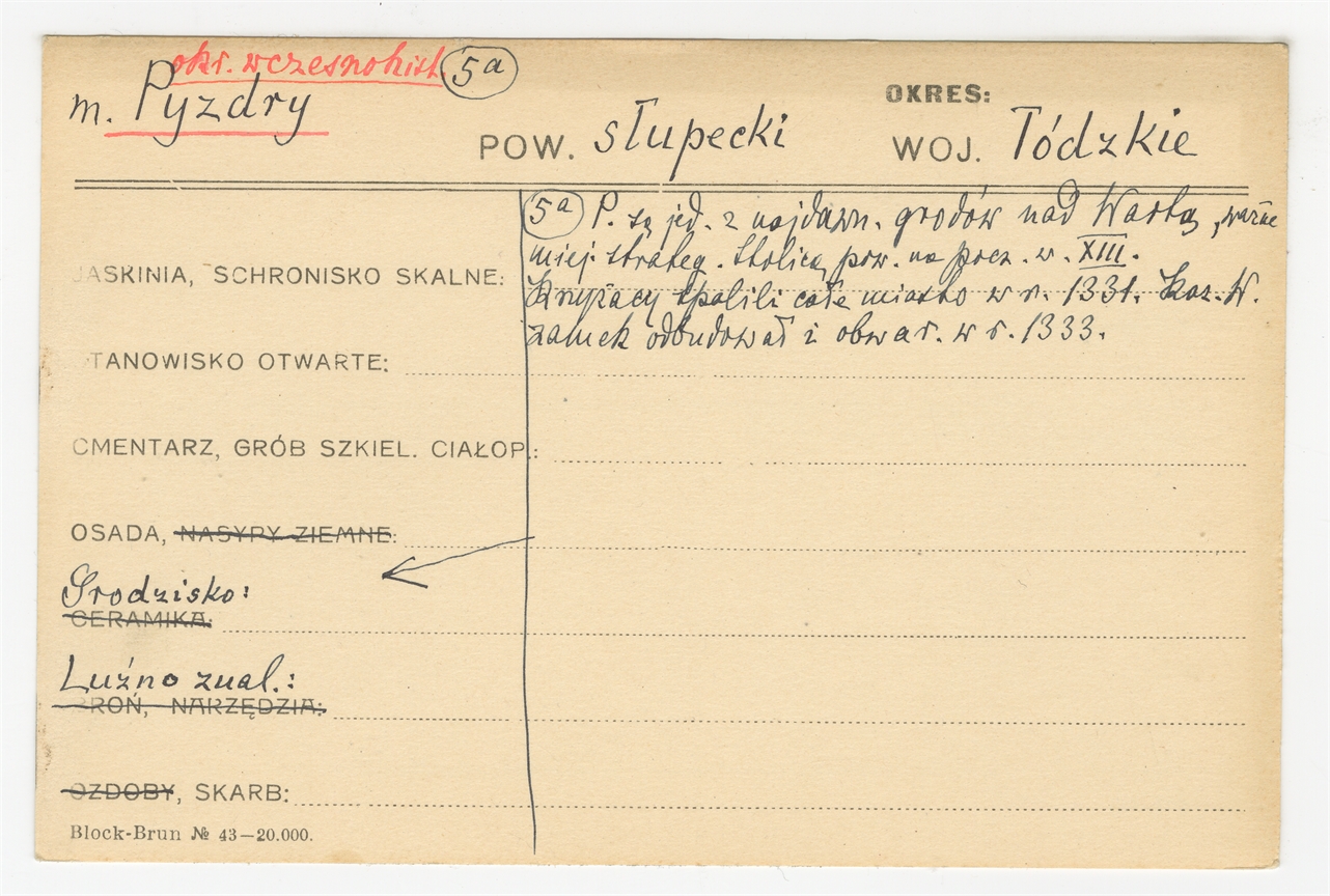 Karta stanowiska "m. Pyzdry pow. słupecki woj. łódzkie" (druk rękopis) - strona 1