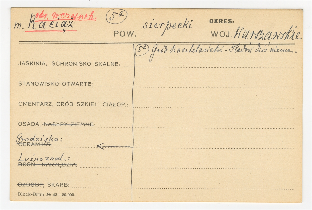 Karta stanowiska "m. Raciąż pow. sierpecki woj. warszawskie" (druk rękopis) - strona 1