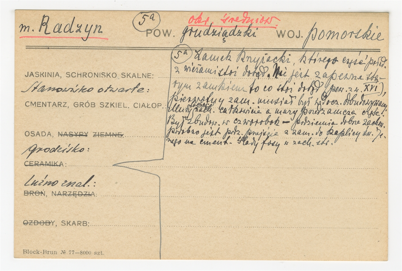 Karta stanowiska "m. Radzyn pow. grudziądzki woj. pomorskie" (druk rękopis) - strona 1