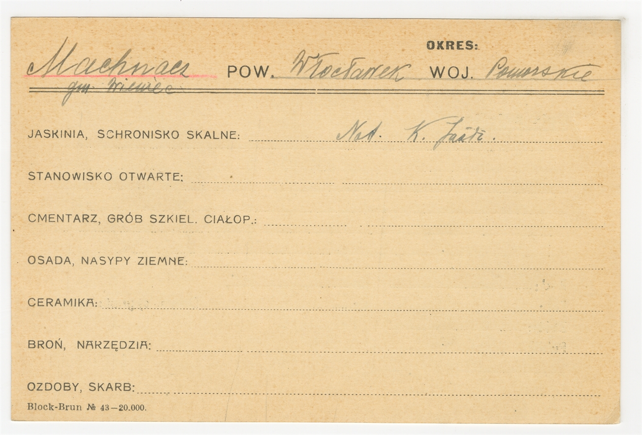 Karta stanowiska "Machnacz gm. Wieniec pow. Włocławek woj. Pomorskie" (druk rękopis) - strona 1