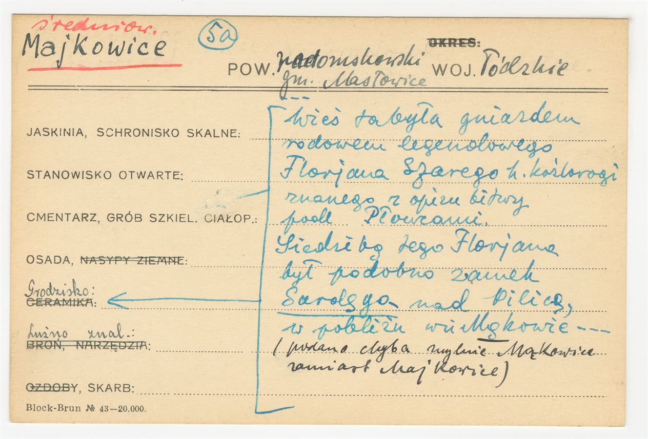 Karta stanowiska "Majkowice gm. Masłowice pow. radomski woj. łódzkie" (druk rękopis) - strona 1