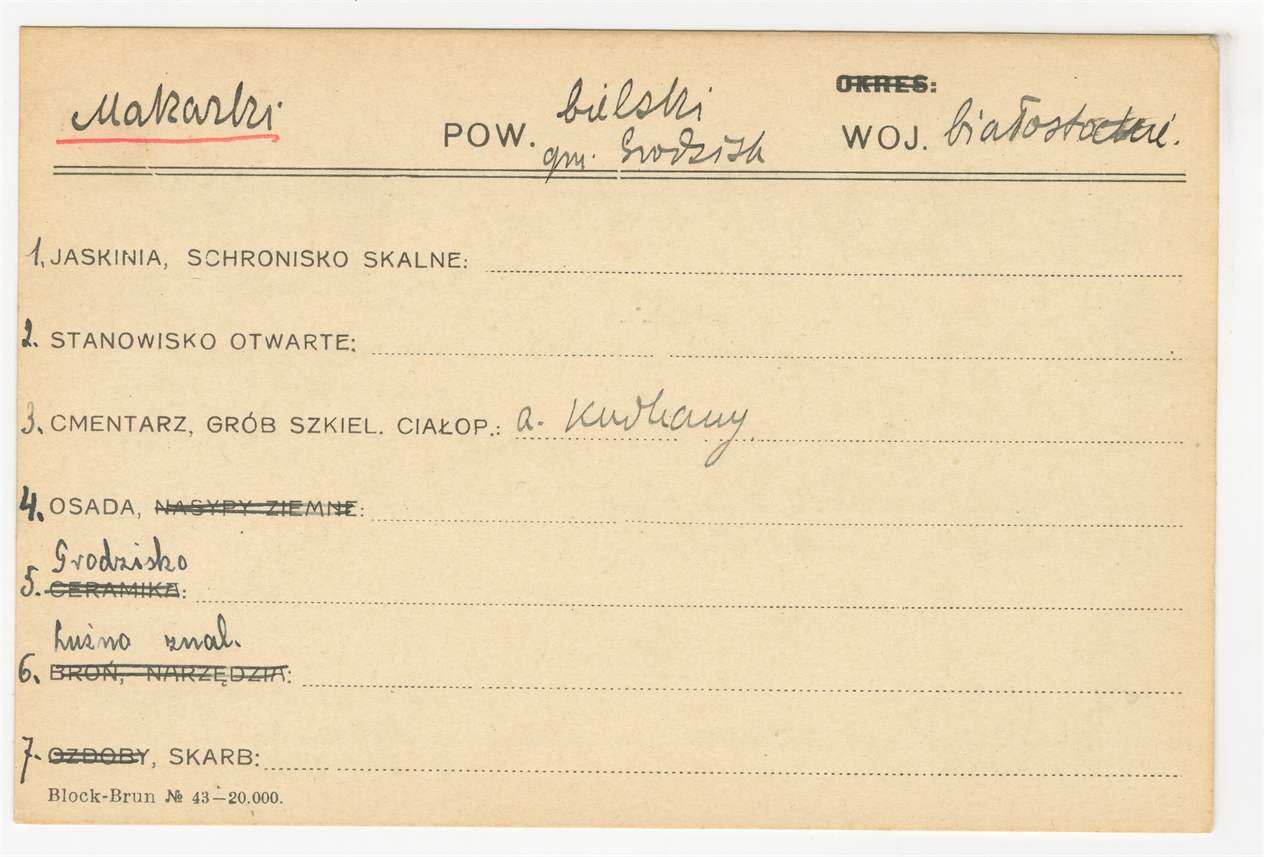 Element 1 - Karta stanowiska "Makarki gm. Grodzisk pow. bielski woj. białostockie" (druk rękopis) - strona 1