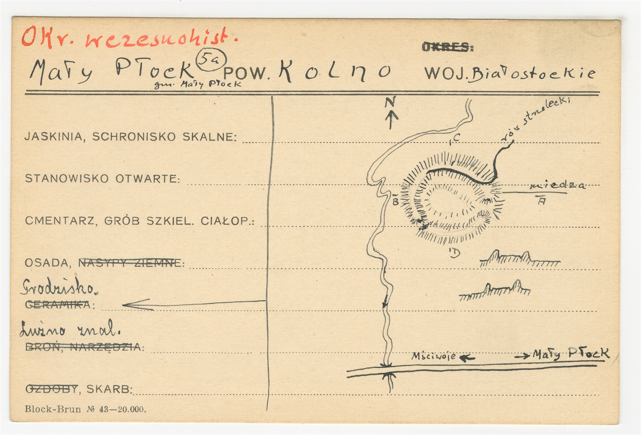 Karta stanowiska "Mały Płock gm. Mały Płock pow. Kolno woj. Białostockie" (druk rękopis) - strona 1