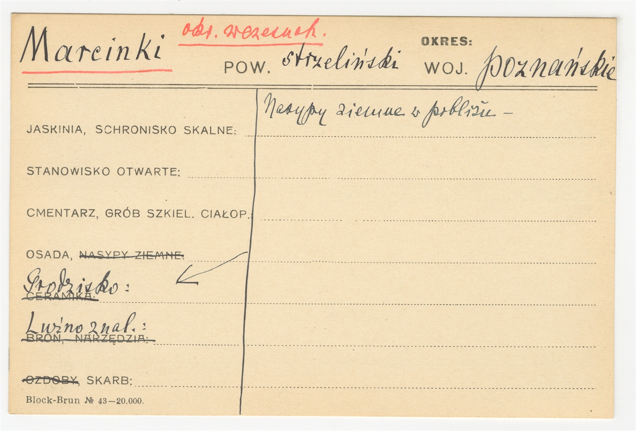 Karta stanowiska "Marcinki pow. strzeliński woj. poznańskie" (druk rękopis) - strona 1