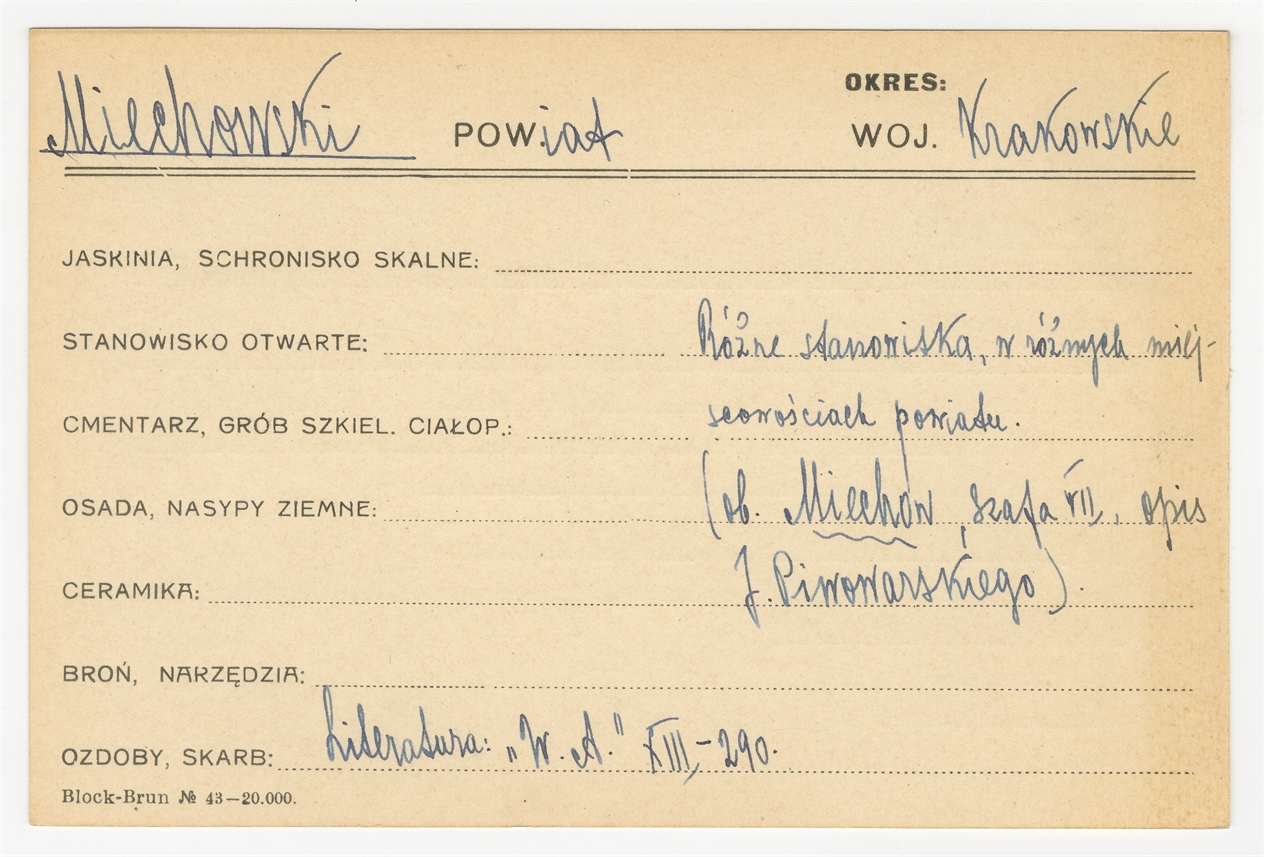 Karta stanowiska "Miechowski powiat woj. Krakowskie" (druk rękopis) - strona 1
