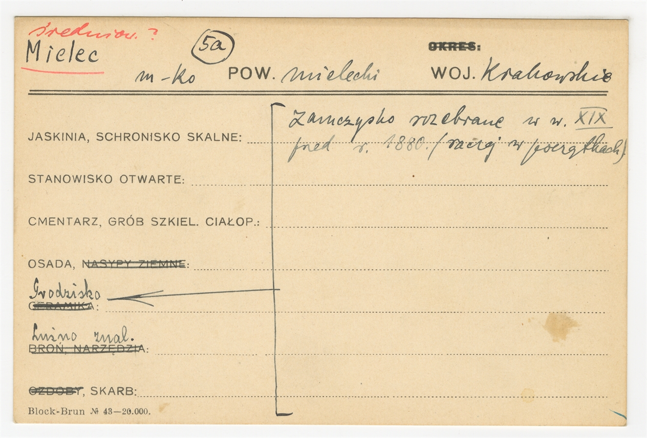 Karta stanowiska "Mielec pow. mielnicki woj. Krakowskie" (druk rękopis) - strona 1