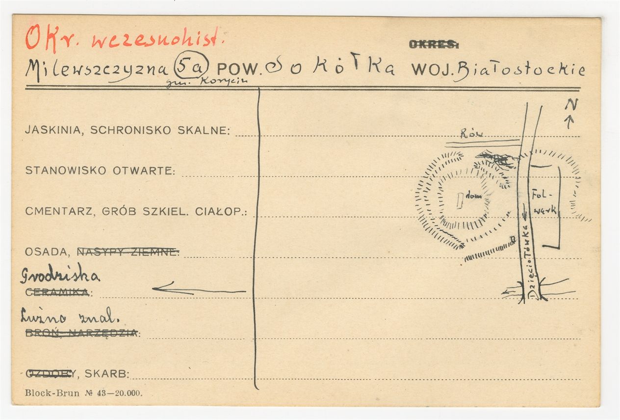 Element 1 - Karta stanowiska "Milewszczyzna gm. Korycin pow. Sokółka woj. Białostockie" (druk rękopis) - strona 1