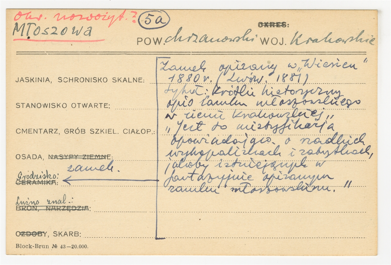 Element 1 - Karta stanowiska "Młoszowa pow. chrzanowski woj. Krakowskie" (druk rękopis) - strona 1