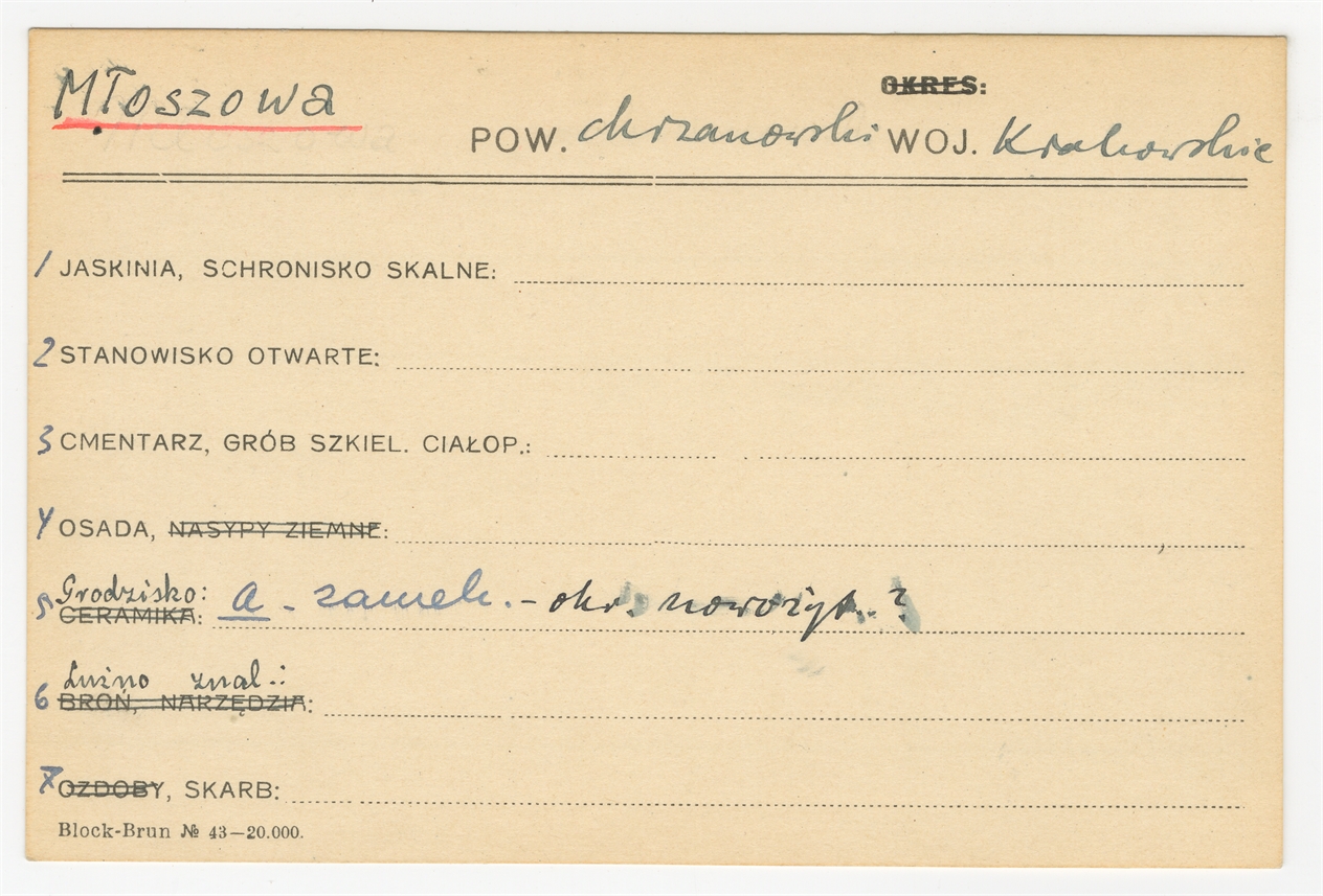 Karta stanowiska "Młoszowa pow. chrzanowski woj. Krakowskie" (druk rękopis) - strona 1