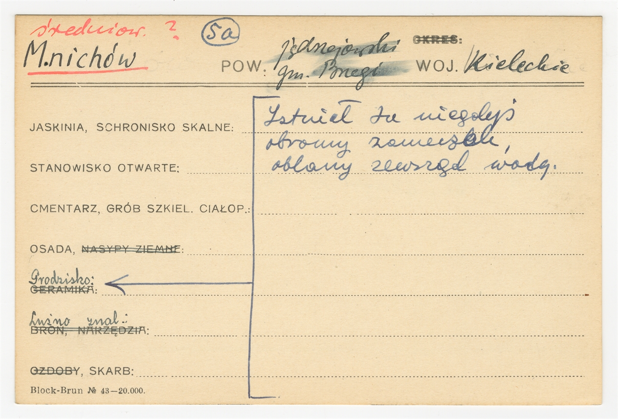 Element 1 - Karta stanowiska "Mnichów gm. Brzegi pow. jędrzejowski woj. Kieleckie" (druk rękopis) - strona 1