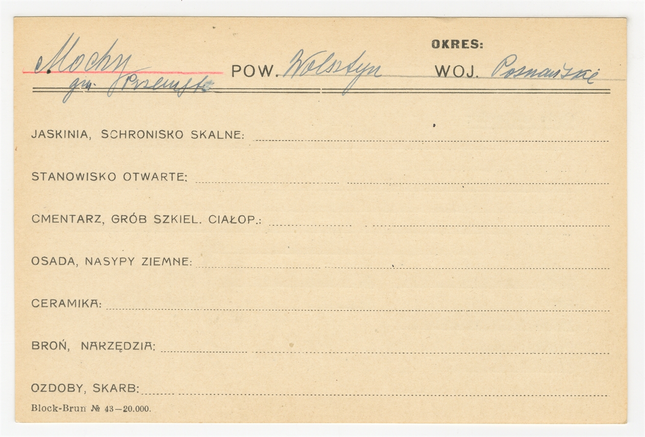 Karta stanowiska "Mochy gm. Przemęt pow. Wolsztyn woj. Poznańskie" (druk rękopis) - strona 1