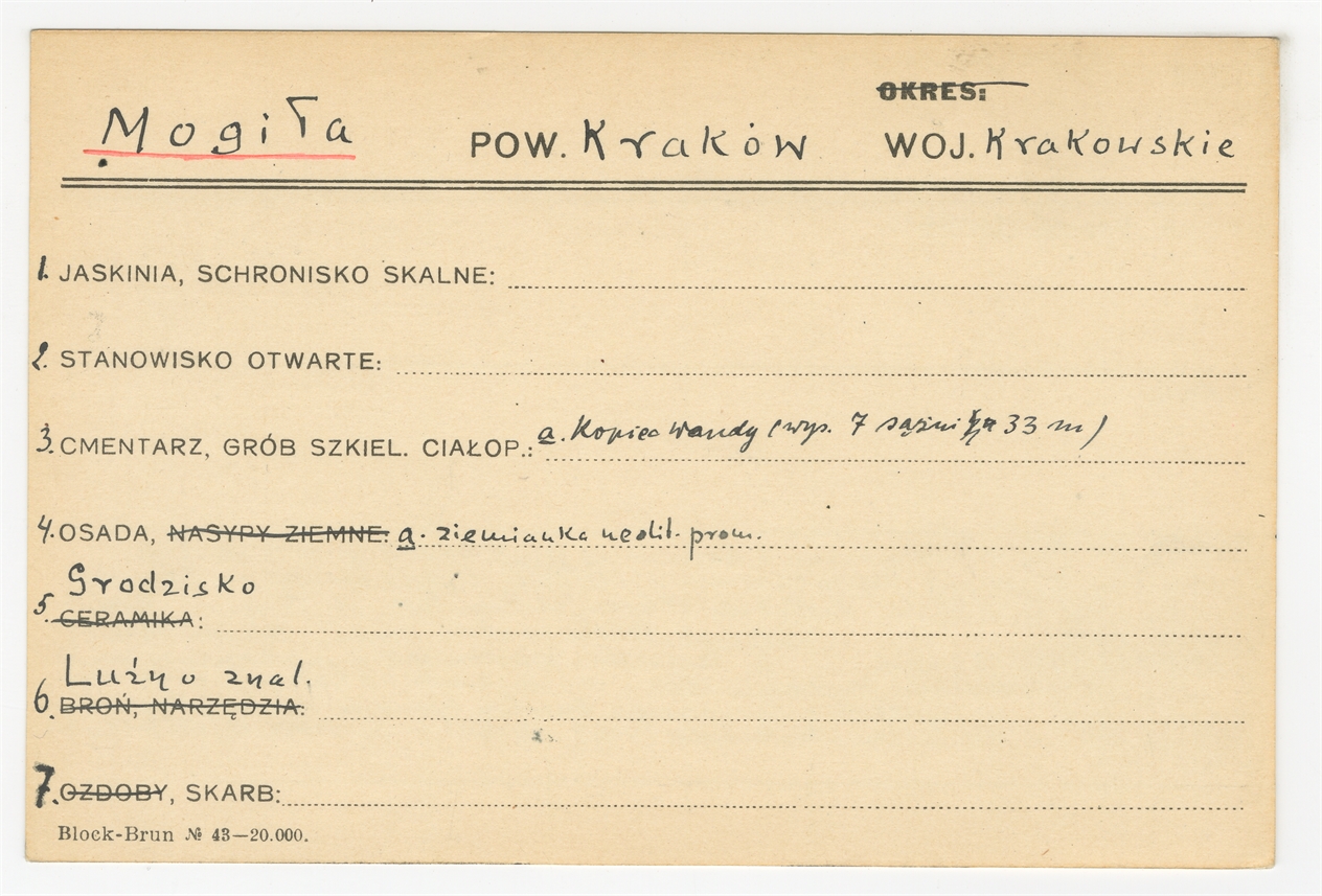 Karta stanowiska "Mogiła pow. Kraków woj. Krakowskie" (druk rękopis) - strona 1