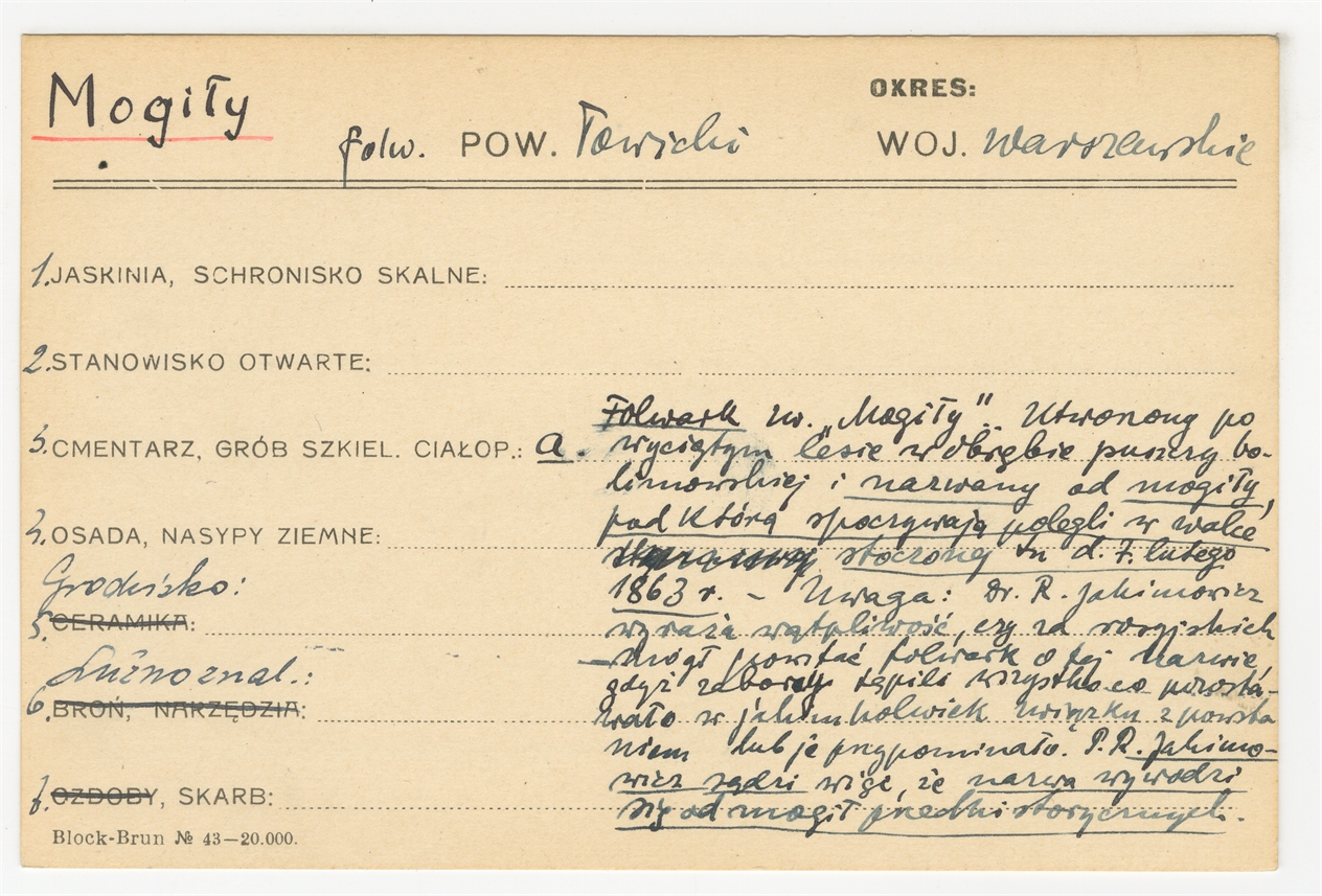 Karta stanowiska "Mogiły folw. pow. łowicki woj. warszawskie" (druk rękopis) - strona 1