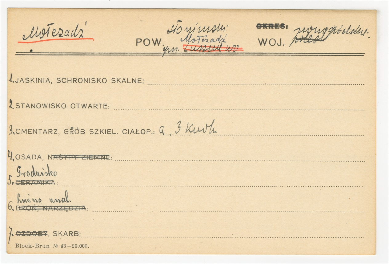 Karta stanowiska "Mołczadź gm. Mołczadź pow. słonimski woj. nowogródzkie" (druk rękopis) - strona 1