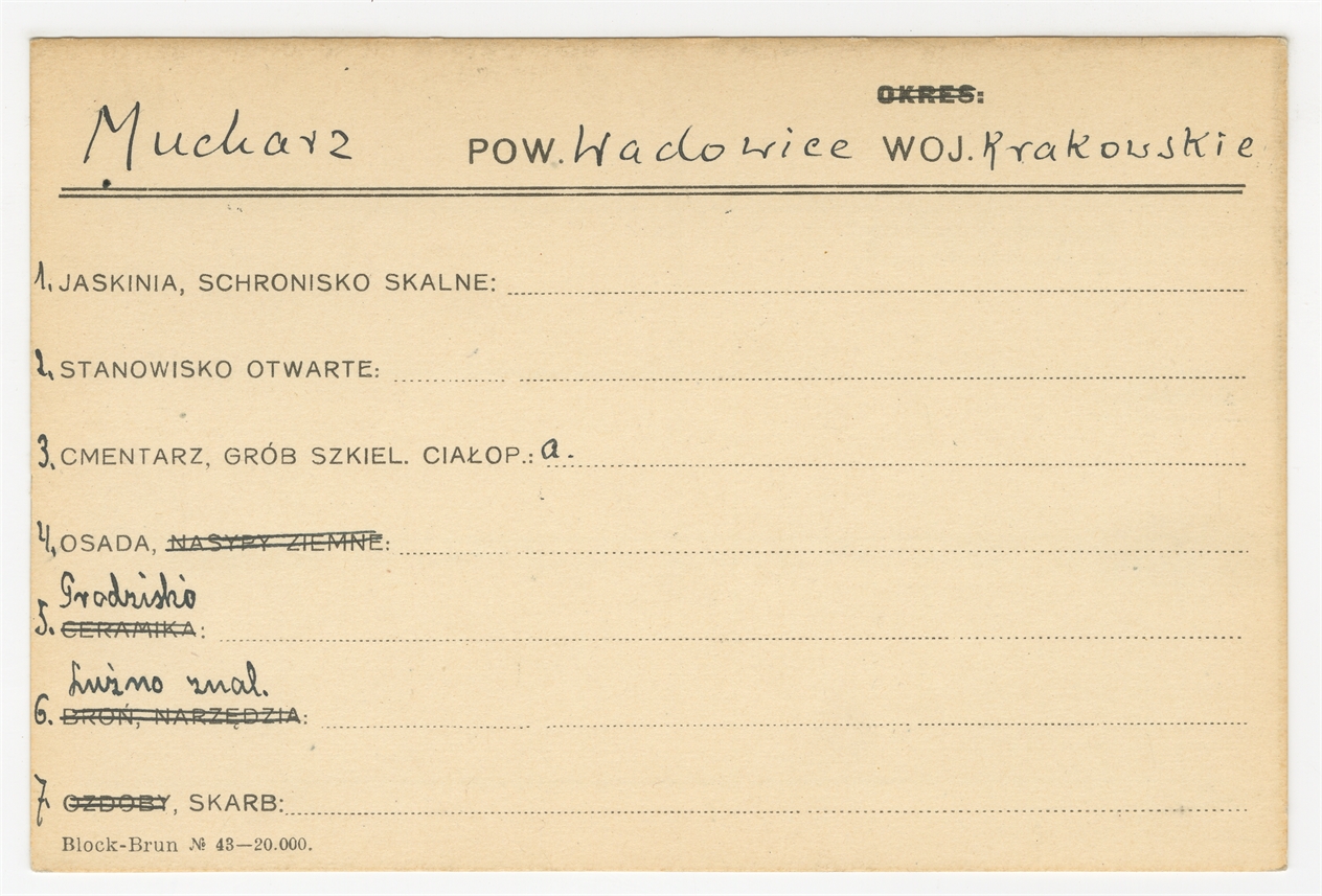 Karta stanowiska "Mucharz pow. Wadowice woj. Krakowskie" (druk rękopis) - strona 1