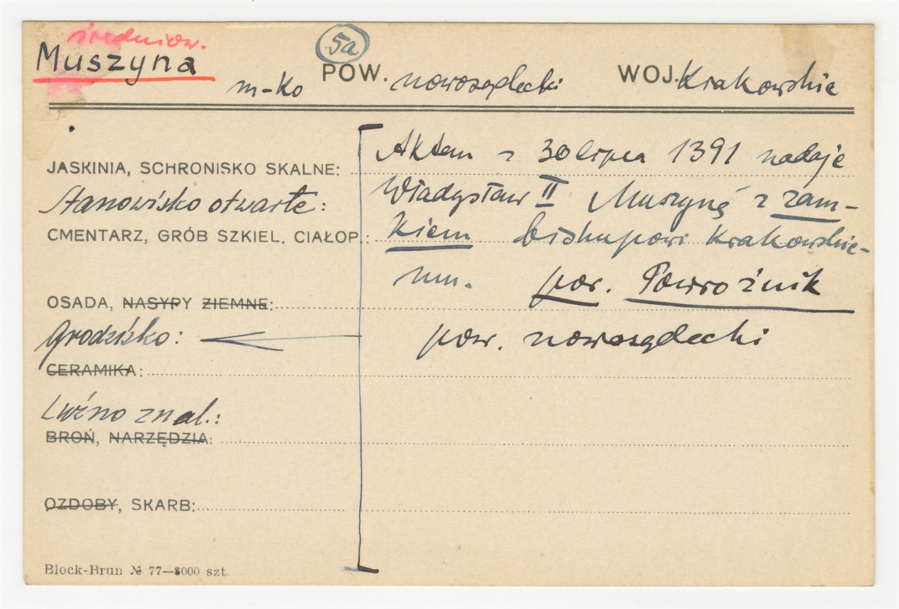 Karta stanowiska "Muszyna pow. nowosądecki woj. Krakowskie" (druk rękopis) - strona 1