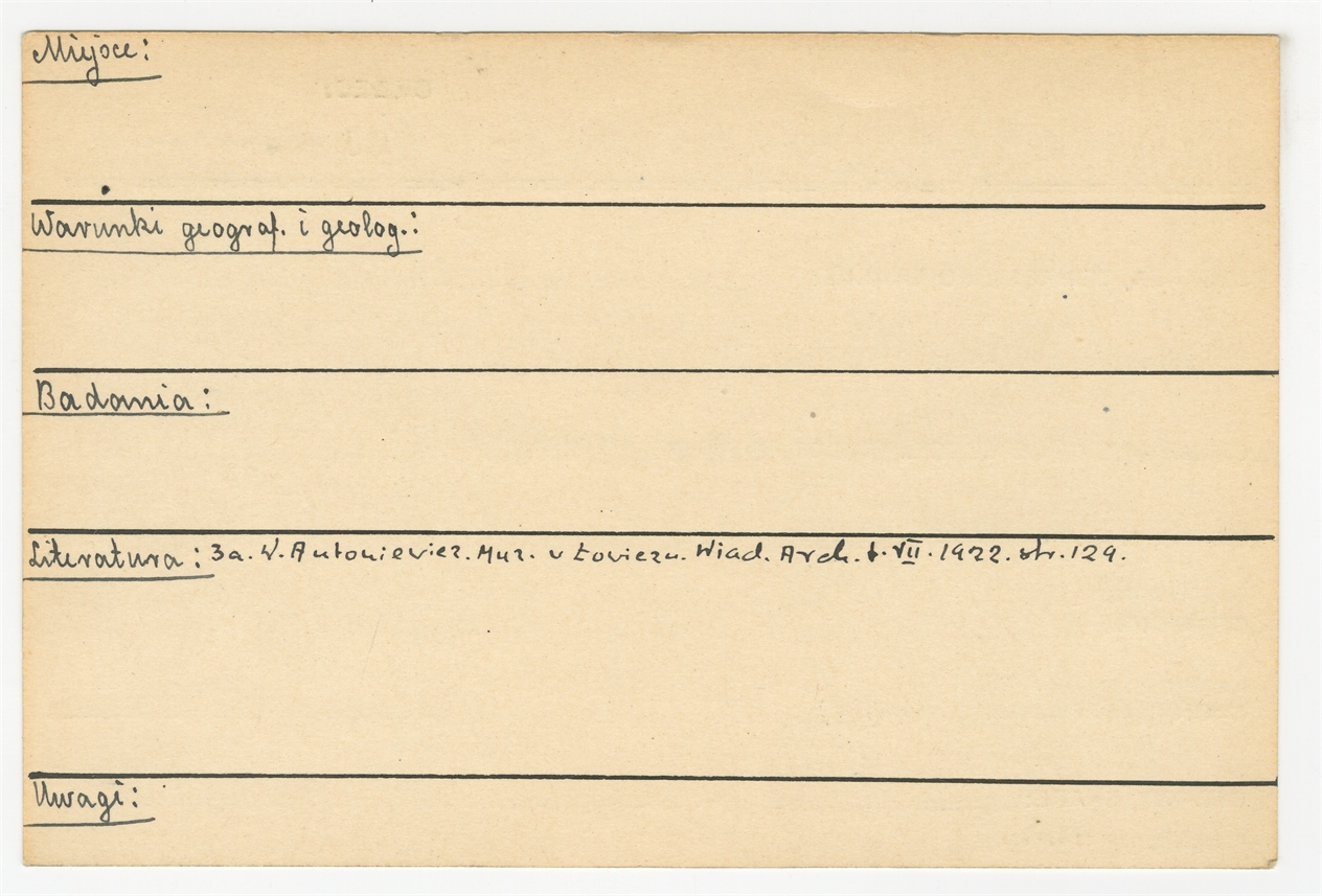 Karta stanowiska "Mysłaków gm. Nieborów pow. Łowicz woj. Warszawskie" (druk rękopis) - strona 2