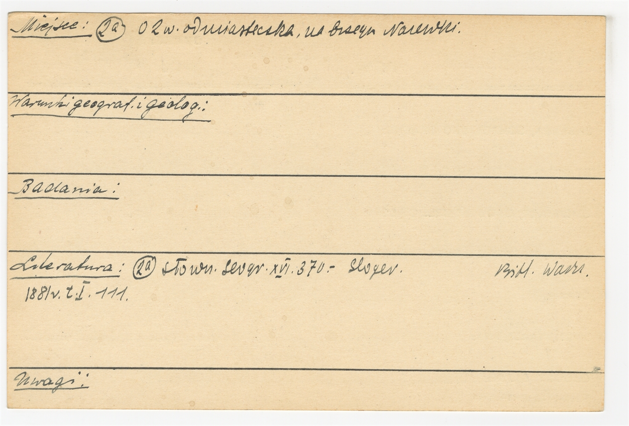 Karta stanowiska "Narewka Mała gm. Masiewo pow. bielski woj. białostockie" (druk rękopis) - strona 2