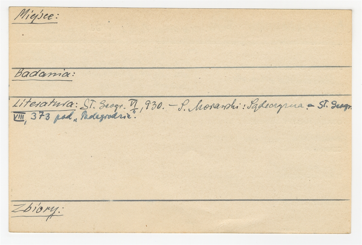 Karta stanowiska "Naszacowice pow. nowosądecki woj. Krakowskie" (druk rękopis) - strona 1