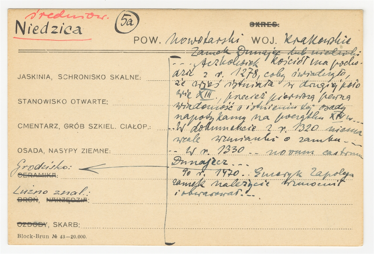 Karta stanowiska "Niedzica pow. nowotarski woj. Krakowskie" (druk rękopis) - strona 1