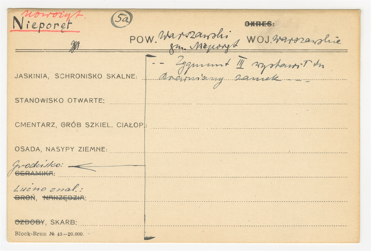 Karta stanowiska "Nieporęt gm. Nieporęt pow. warszawski woj. warszawskie" (druk rekopis) - strona 1