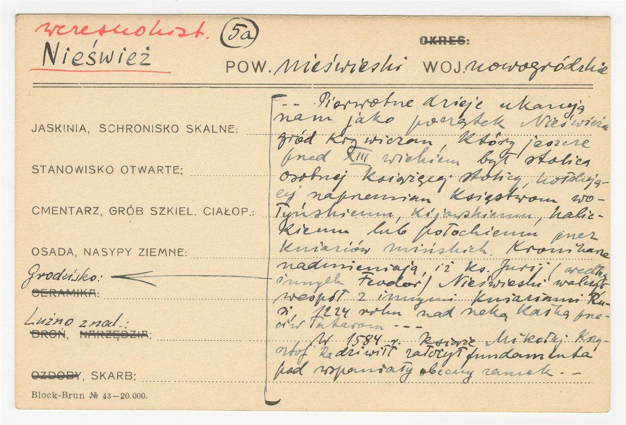 Karta stanowiska "Nieśwież" pow. nieświeski woj. nowogródzkie (druk rękopis) - strona 1