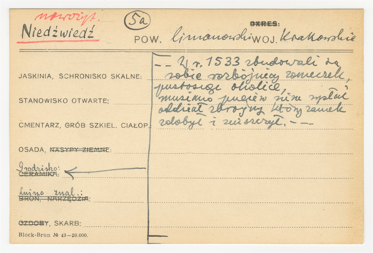 Karta stanowiska "Nieźwiedź pow. limanowski woj. Krakowskie" (druk rękopis) - strona 1
