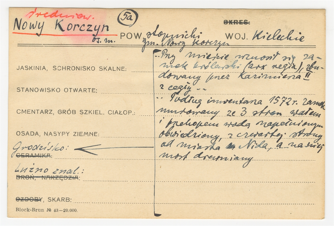 Karta stanowiska "Nowy Korczyn os. m gm. Nowy Korczyn pow. stopnicki woj. kieleckie" (druk rękopis) - strona 1