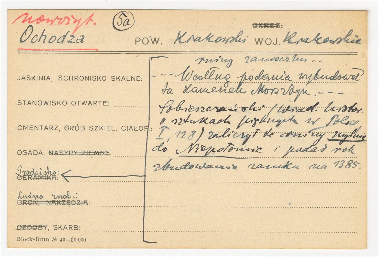 Karta stanowiska "Ochodza pow. Krakowski woj. Krakowskie" (druk rękopis) - strona 1
