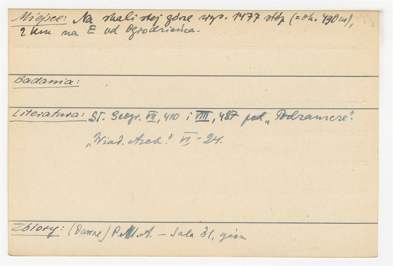 Karta stanowiska "Ogrodzieniec os. m. gm. Ogrodzieniec pow. Olkuski woj. Kieleckie" (druk rękopis) - strona 2