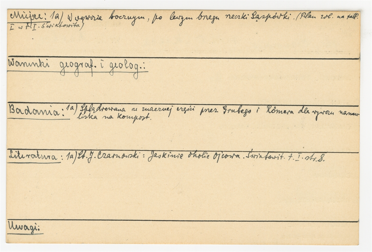 Karta stanowiska "Ojców - Jask. Koziarnia gm. Cianowice pow. Olkusz woj. Kielce (druk rękopis) - strona 2