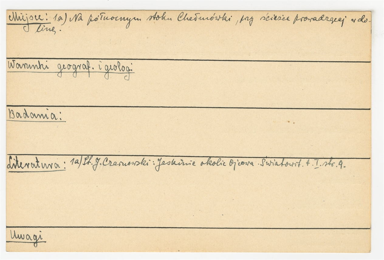 Karta stanowiska "Ojców - Jask. Wilczy Dół gm. Cianowice pow. Olkusz woj. Kielce (druk rękopis) - strona 2