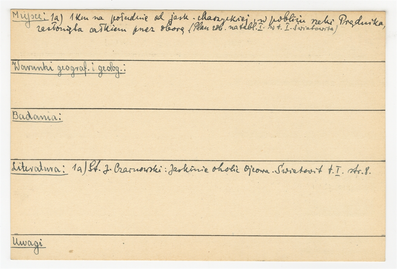 Karta stanowiska "(Ojców) Maszyce - Jask. Zamieszkała gm. Cianowice pow. Olkusz woj. Kielce" (druk rękopis) - strona 2