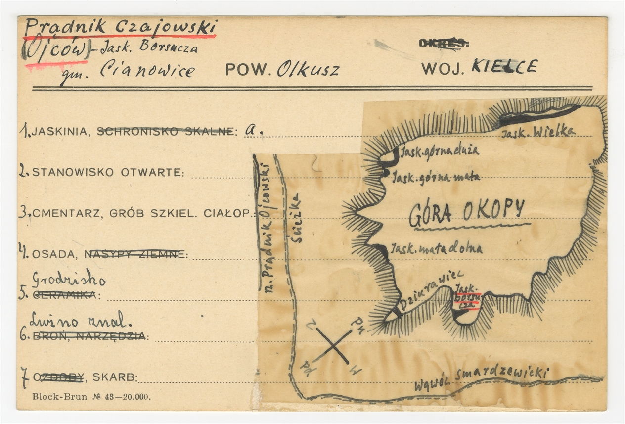 Element 1 - Karta stanowiska "(Ojców) Prądnik Czajkowski - Jask. Borsucza Prądnik Czajowski gm. Cianowice woj. Kielce (druk rękopis) - strona 1