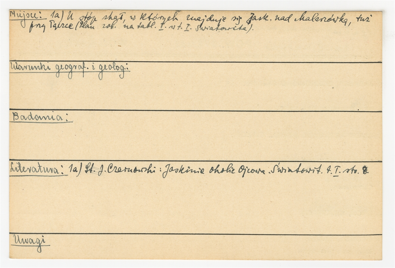 Karta stanowiska "(Ojców) Prądnik Korzkiewski - Jask. nad Malarzówką dolna gm. Cianowice pow. Olkusz woj. Kielce (druk rękopis) - strona 2