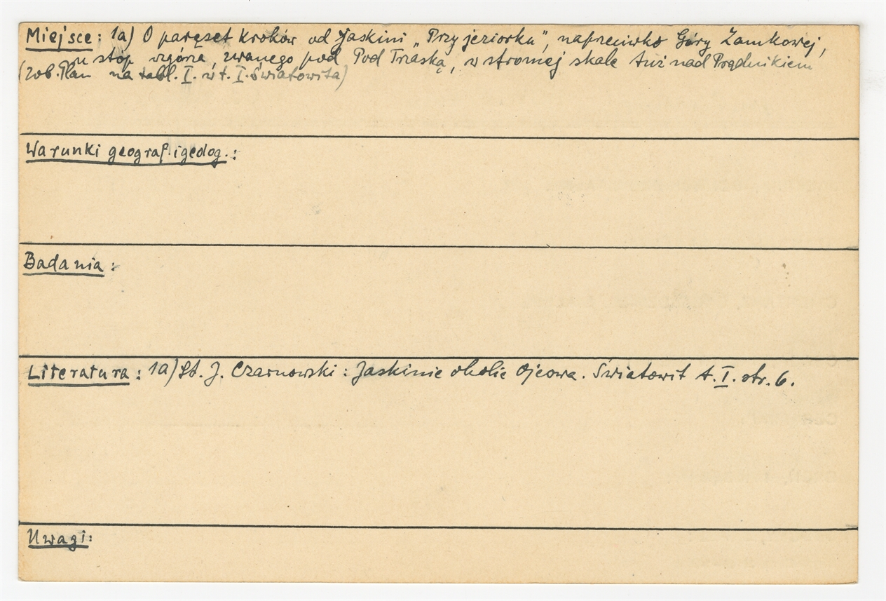 Karta stanowiska "(Ojców) Prądnik Ojcowski - Jask. Dziurawiec przy Zamku gm. Cianowice pow. Olkusz woj. Kielce (druk rękopis) - strona 2