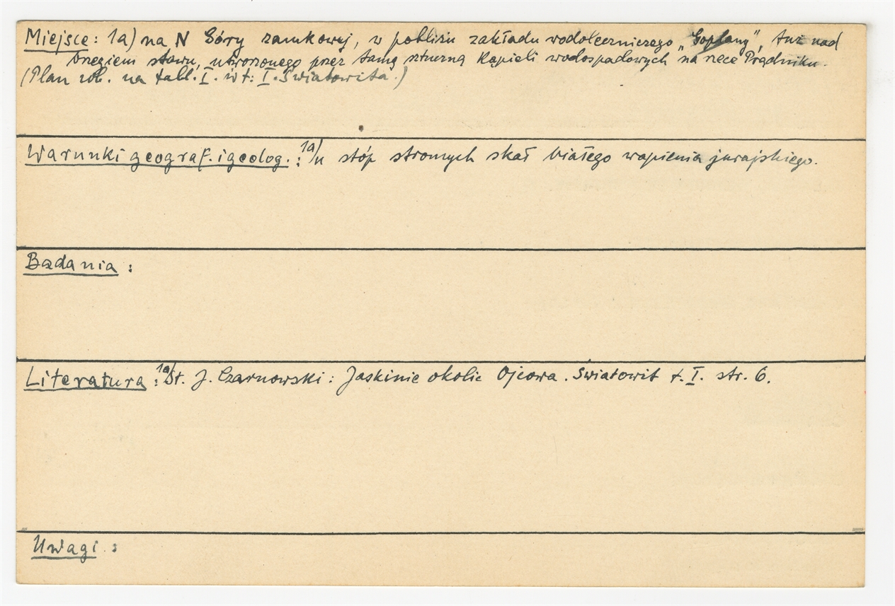 Karta stanowiska "(Ojców) Prądnik Ojcowski - Jask. Przy jeziorku gm. Cianowice pow. Olkusz woj. Kielce (druk rękopis) - strona 2