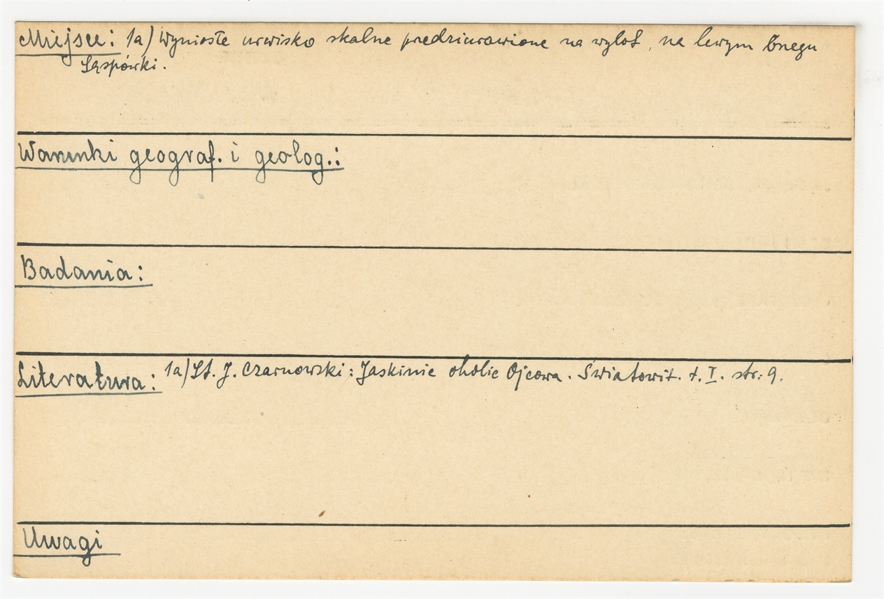 Karta stanowiska "(Ojców) Prądnik Ojcowski - Jask. Wylotna gm Cianowanie pow. Olkusz woj. Kielce" (druk rękopis) - strona 2