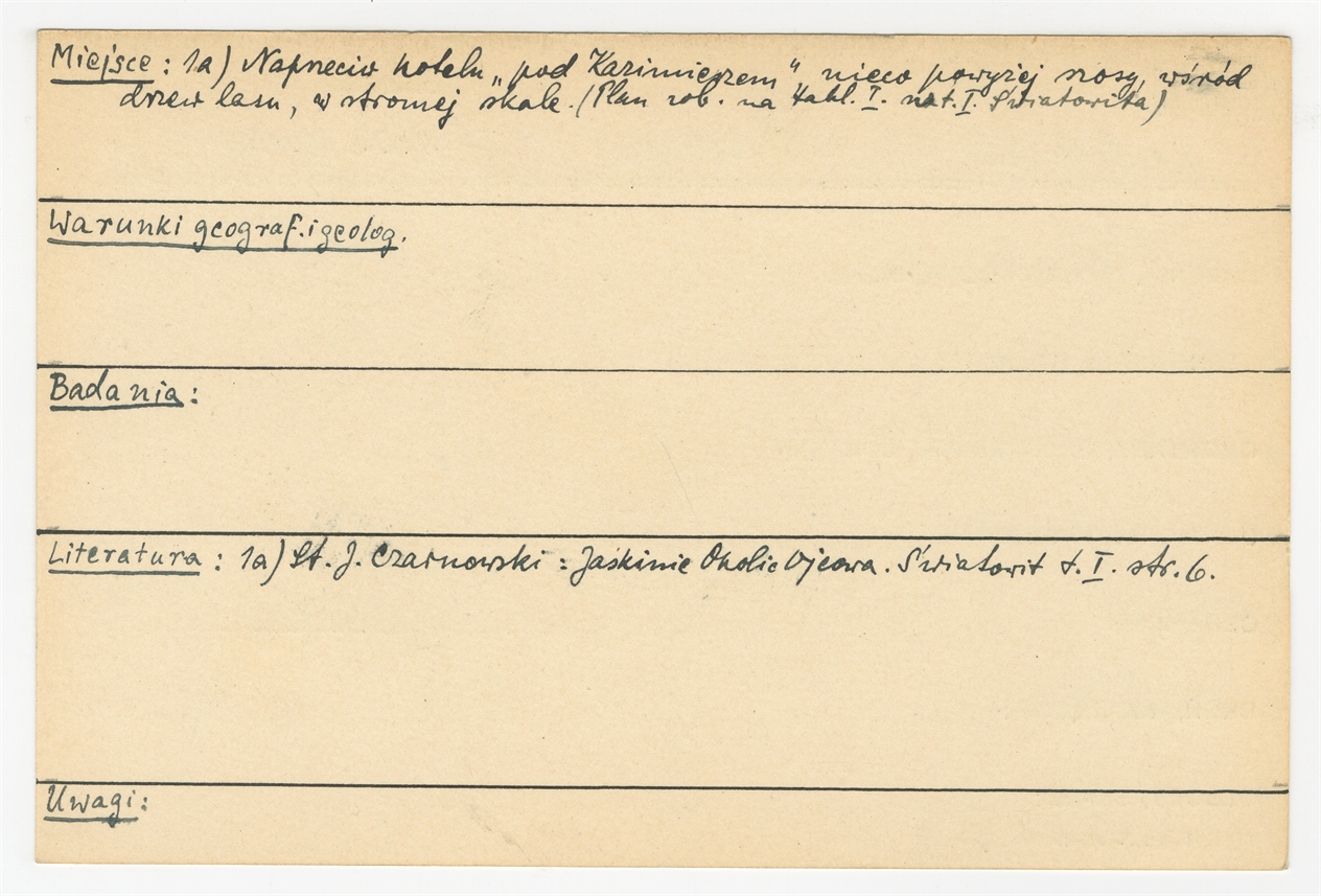 Karta stanowiska "(Ojców) Prądnik Ojcowski - Schron. Niedźwiedzia jama gm. Cianowice pow. Olkusz woj. Kielce" (druk rękopis) - strona 2