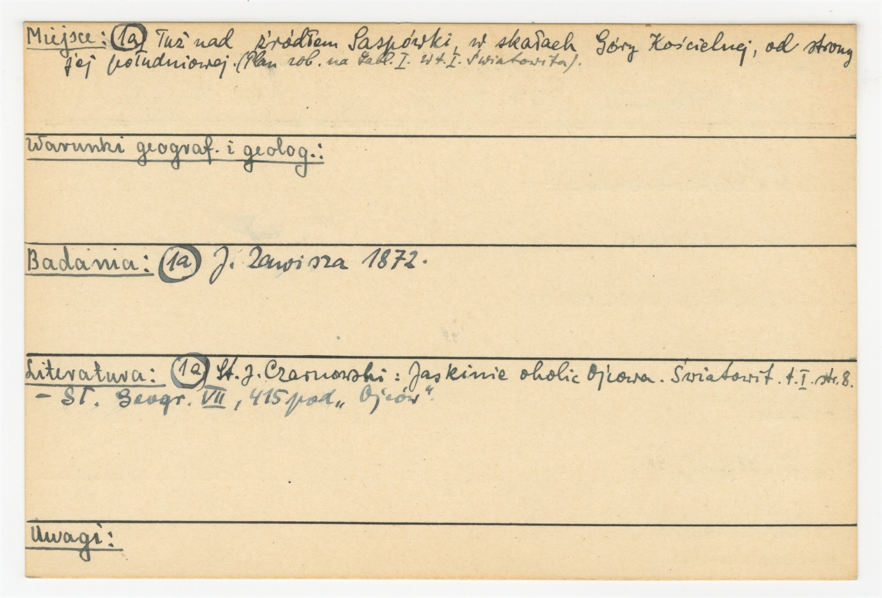 Karta stanowiska "(Ojców) Sąśpów - Jask. Sąspowska zachodnia gm. Sułoszowa pow. Olkusz woj. Kielce" (druk rękopis) - strona 2