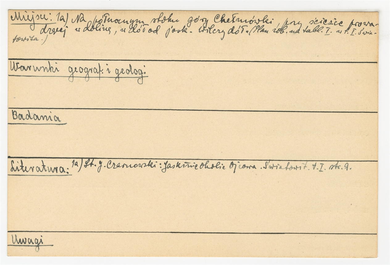 Karta stanowiska "Ojców - schron. Jama Mała gm. Cianowice pow. Olkusz woj. Ki elce (druk rękopis) - strona 2