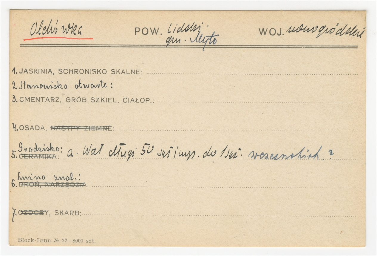Karta stanowiska "Olchówka gm. Myto pow. Lidzki woj. nowogródzkie" (druk rękopis) - strona 1