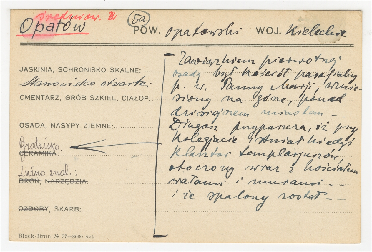 Karta stanowiska "Opatów pow. opatowski woj. Kieleckie" (druk rękopis) - strona 1