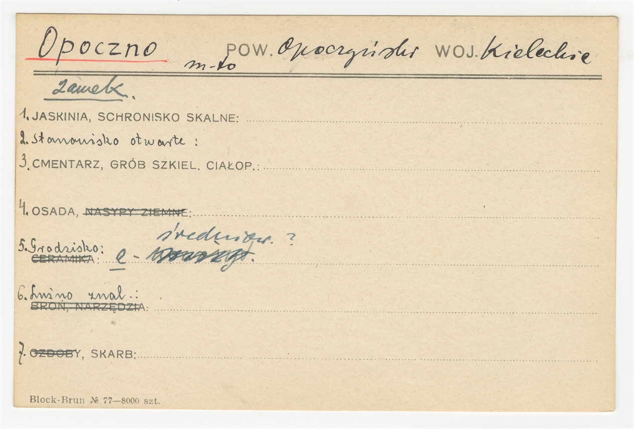 Karta stanowiska "Opoczno m-to pow. Opoczyński woj. Kieleckie" (druk rękopis) - strona 1