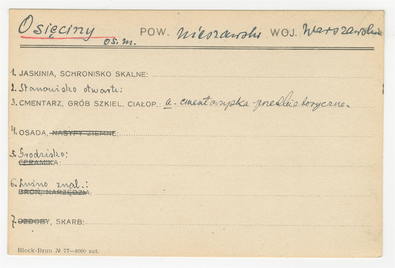 Karta stanowiska "Osięciny os. m. pow. nieszawski woj. warszawskie" (druk rekopis) - strona 1