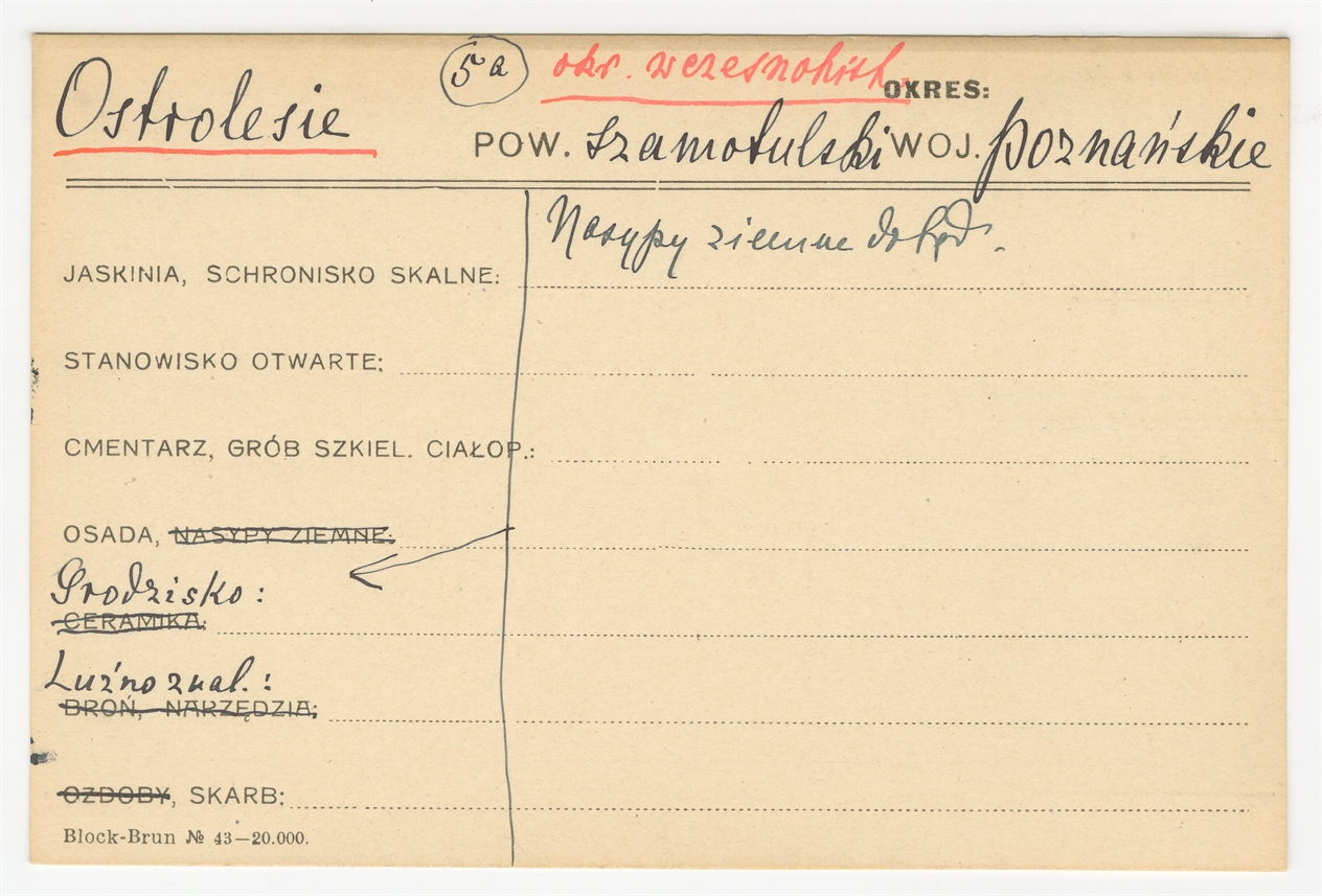 Karta stanowiska "Ostrolesie pow. szamotulski woj. poznańskie" (druk rękopis) - strona 1