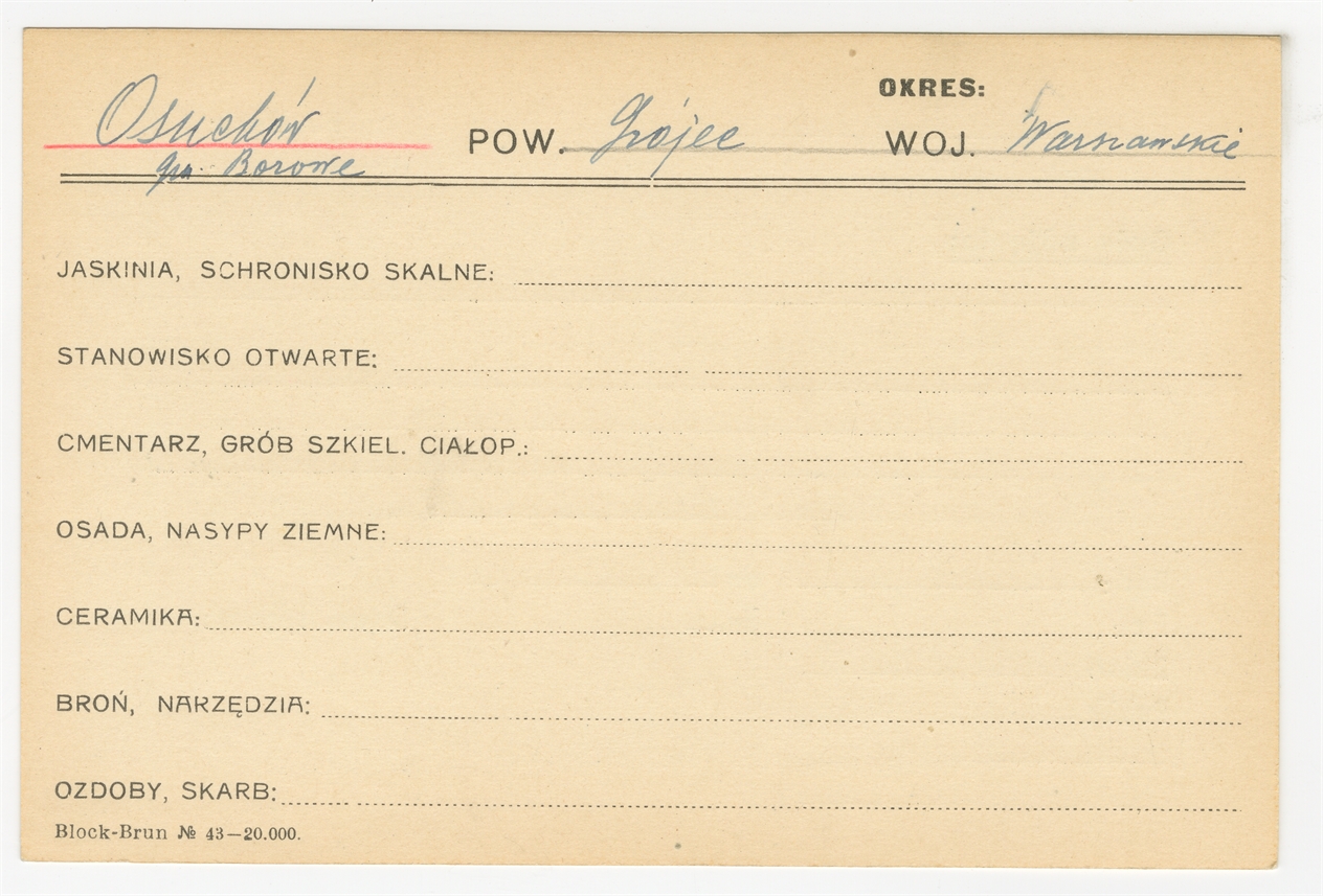 Karta stanowiska "Osuchów gm. Borowe pow. Grójec woj. Warszawskie" (druk rękopis) - strona 1