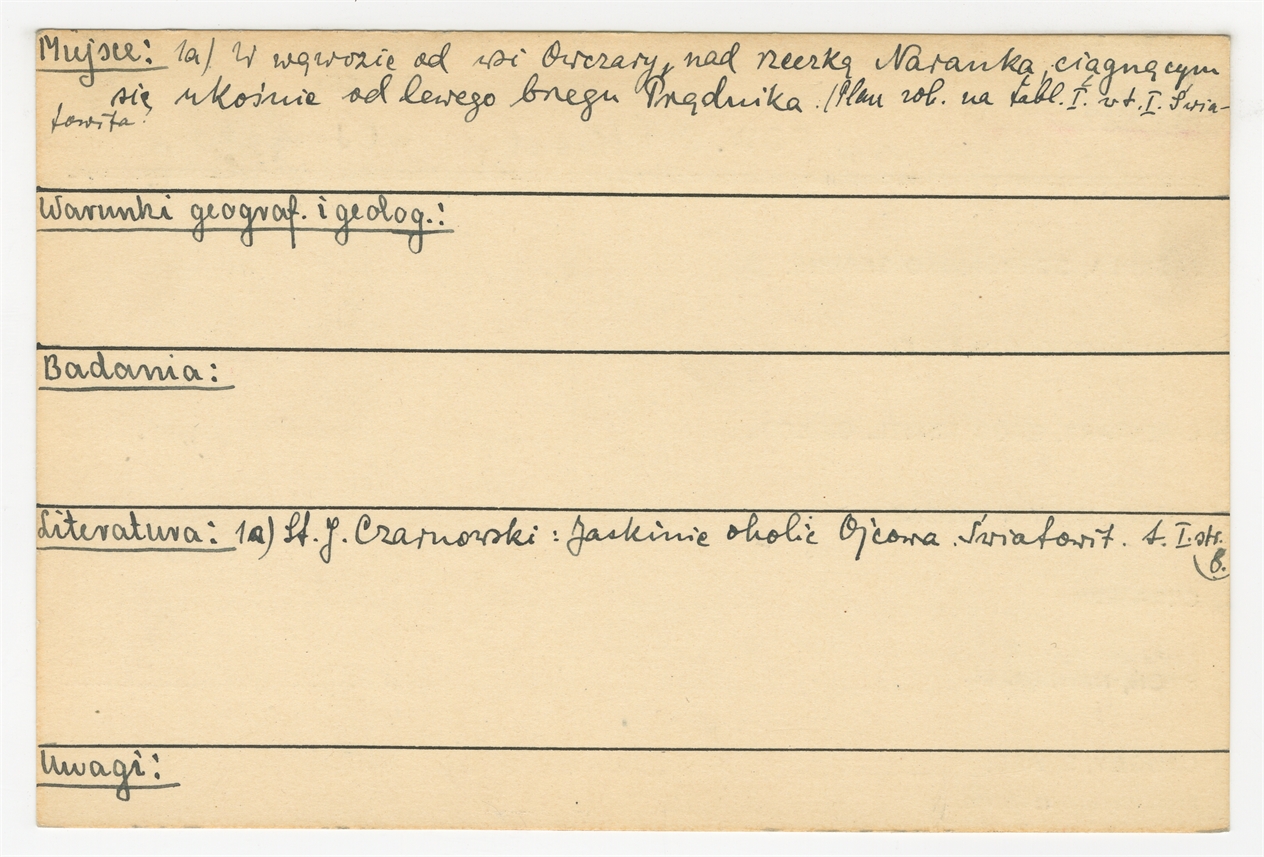 Karta stanowiska "Owczary - Jask. Owczarska gm. Cianowice pow. Olkusz woj. Kielce" (druk rękopis) - strona 2