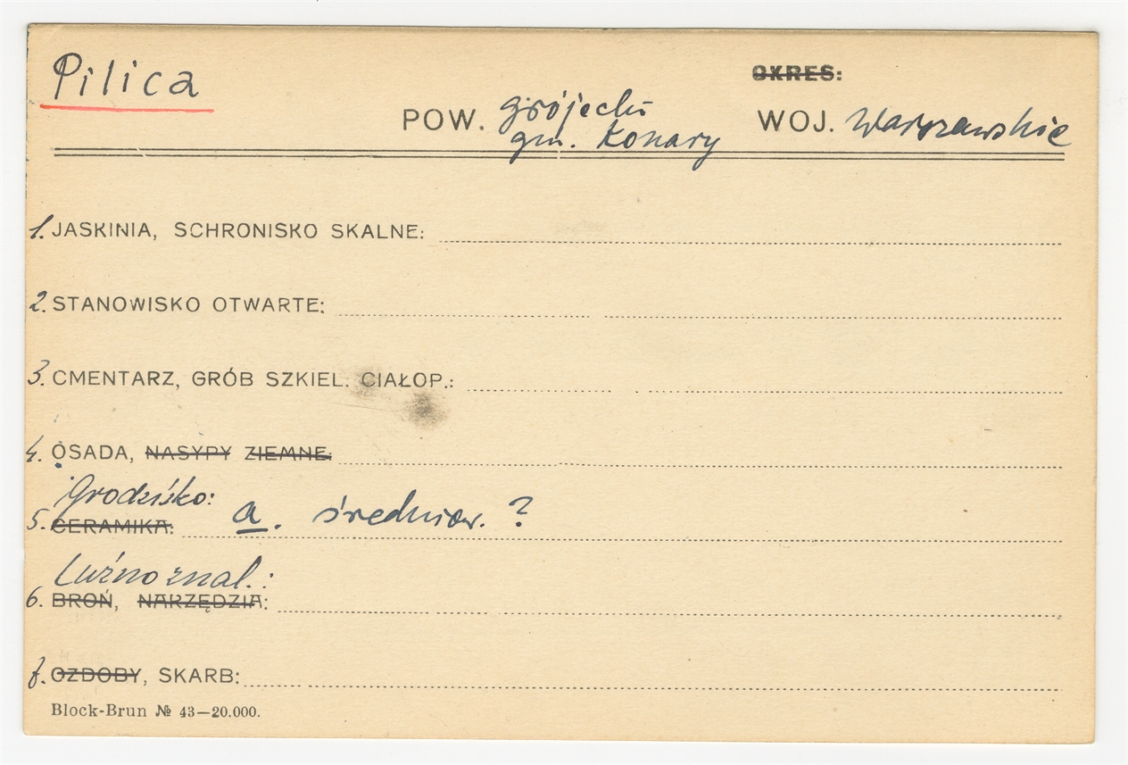 Karta stanowiska "Pilica gm. Konary pow. grójecki woj. warszawskie" (druk rękopis) - strona 1