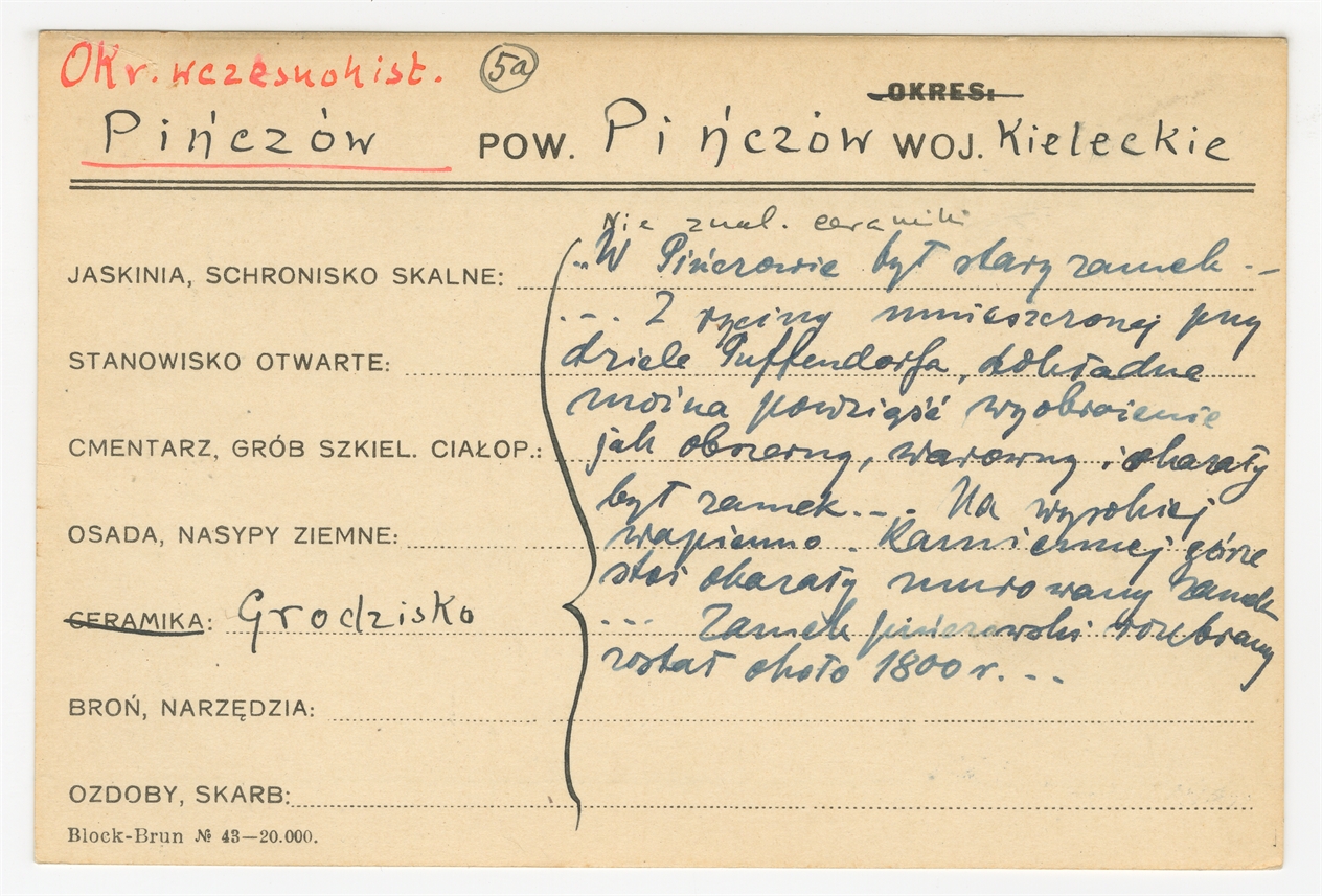Karta stanowiska "Pińczów pow. Pińczów woj. Kieleckie" (druk rękopis) - strona 1